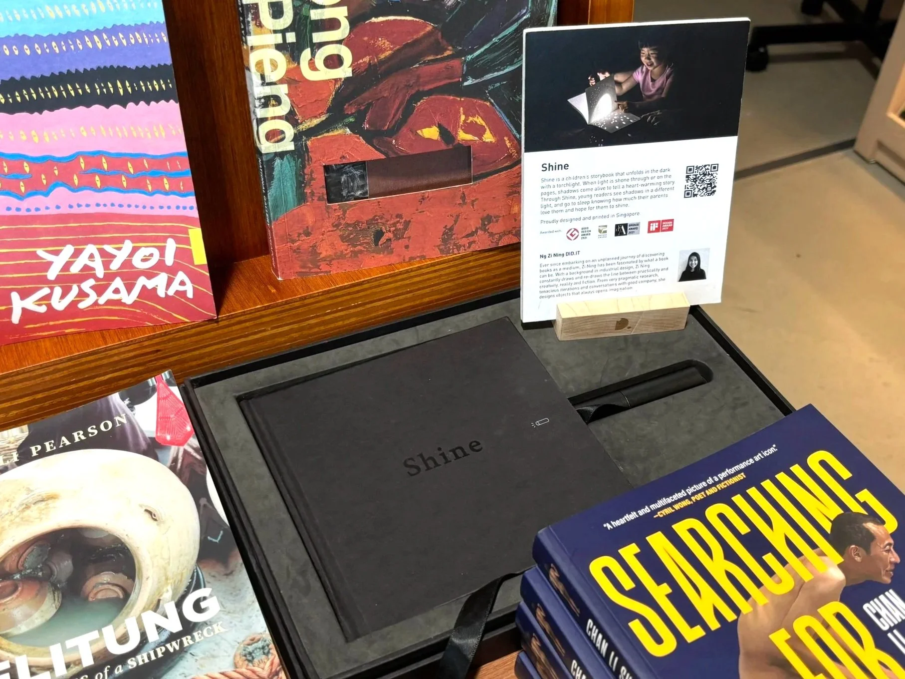 An interactive storybook which unfolds in the dark with a torchlight. When light is shone through or on the pages, shadows come alive to tell a heartwarming story. Through Shine, young readers see shadows in a different light, and go to sleep knowing how much their parents love them and hope for them to shine.